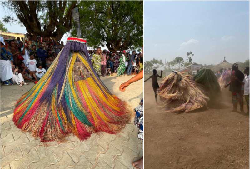 - Colorful costumes and people dressed up as gods and ancestral spirits.