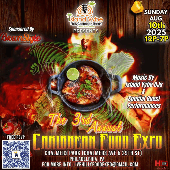 Sunday, August 10, 2025. Eat until your heart’s content at the 3rd Annual Caribbean Food Expo. Indulge in the rich Caribbean culture. Feast on favorites like Belizean rice and beans, Baigan chokka (roasted eggplant), and the Trinidadian appetizer Pineapple Chow (pineapple, garlic, and cilantro). Enjoy island-inspired goods and the laid-back rhythms of Vybe DJs and special live performances. Free admission but pre-register; Noon to 7 p.m. EST. Chalmers Park, 29th Street and Chalmers Ave. Email: Ivphillyfoodexpo@gmail.com or https://www.frontlineticketing.com/…/Caribbeanfoodexpo25