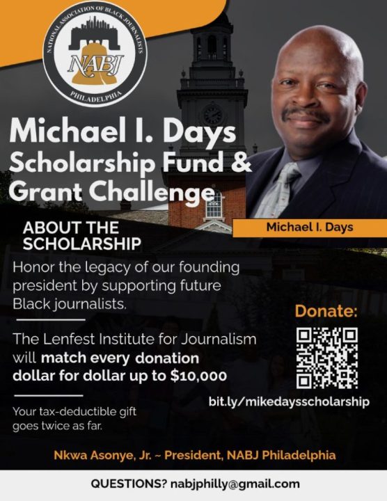 Pulitzer Prize-winning editor Michael I. Days loved taking young journalists under his wing to show them how to ply their trade. He was never too busy to share his time and talent. When the former editor of the Philadelphia Daily News and vice president of the Philadelphia Inquirer died last year, journalism lost a true champion and mentor. From lead to 30, Days was a consummate professional who fought fiercely for diversity in the newsroom and a free press. Recognizing his contributions to the industry, the National Association of Black Journalists, a Philadelphia nonprofit, created a scholarship fund in his name. NABJ Philadelphia has established a $10,000 Challenge Grant for the Michael I. Days Scholarship Fund; your donation will be matched by the Lenfest Institute for Journalism, doubling the impact to help nurture future storytellers. Days was the founding president of NABJ, Philadelphia.
