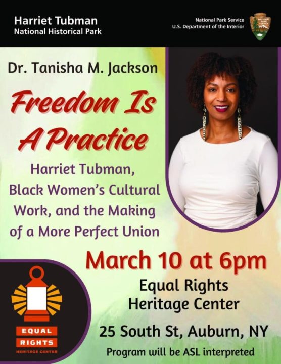 Following the daytime park events, the commemoration shifts downtown to the NYS Equal Rights Heritage Center for an extensive evening program. The focal point of the night is a keynote address by Dr. Tanisha M. Jackson. She is an African American Studies professor at Syracuse University and the executive director of the Community Folk Art Center. Her lecture is titled “Freedom Is a Practice: Harriet Tubman, Black Women’s Cultural Work, and the Making of a More Perfect Union.”