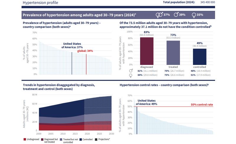 In the United States, the disparity persists. Black adults continue to have a higher prevalence and lower control of hypertension. The rate of high blood pressure among Black adults in the United States is among the highest in the world.