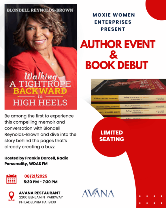 Thursday, August 21, 2025. Learn all about Blondell Reynolds-Brown and her journey as a legislator and single mother juggling a City Council career at Philadelphia’s City Hall in a candid political and personal memoir at a book-signing event and conversation about Walking a Tightrope Backward in High Heels. Meet Reynolds-Brown, now a senior advisor and public policy-maker at Frank DiCicco Associates, as she reflects on her life and times. In a 20-year career with its share of ups and downs, she worked in a challenging and never-dull environment that one local columnist called “The Big Top.” Through it all, Reynolds-Brown was a staunch champion of the arts, minorities, women-owned businesses, LGBTQIA rights, and environmental issues. With charm and grit, she forwarded impactful legislation for women, children, and families. The promotional material offers: “Part political memoir, part leadership manifesto, this powerful account from a pioneering public servant shows what’s possible with equal measures of moxie and grace.” Hosted by WDAS’s Frankie Darcell, engage with the author, whose book is available for purchase. Free admission, 5:30 p.m. EST to 7:30 p.m. EST. Avana Restaurant, 2200 Benjamin Franklin Pkwy. 215-419-5971 or Avanaphilly.com